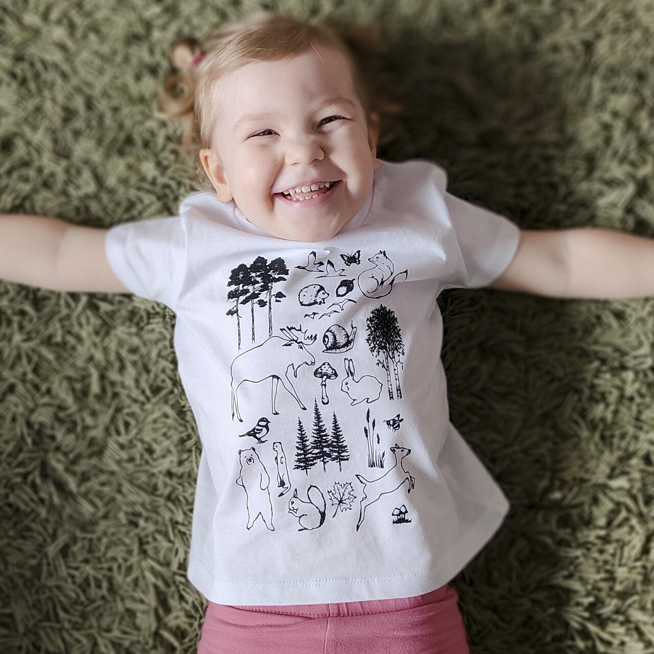 Laste t-särk "Metsaelu" on klassikalise unisex lõikega ja sobib nii poisile kui ka tüdrukule.
