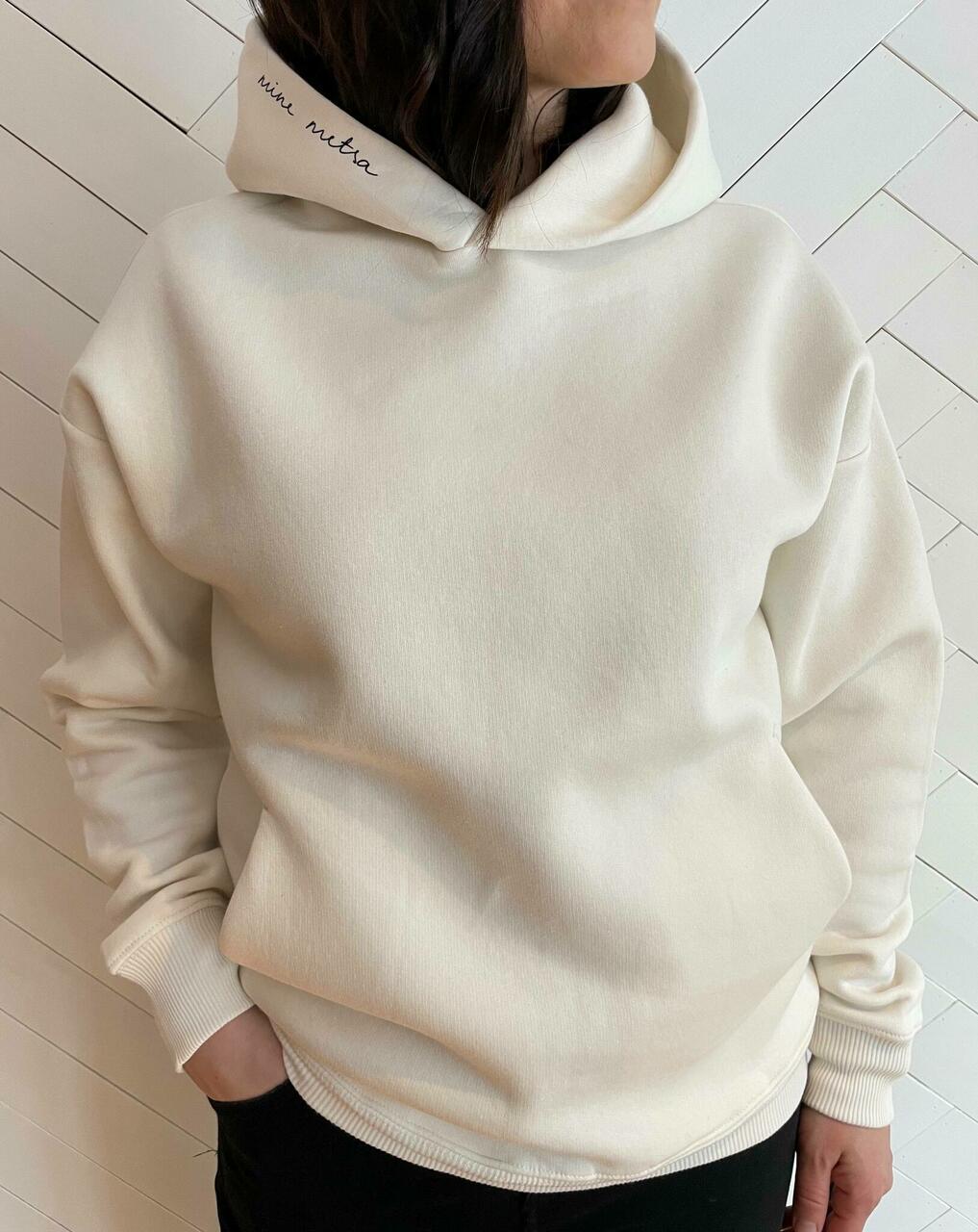 Avara lõikega unisex pusa sobib kandmiseks nii meestele kui naistele. Pusal on kapuuts, pikendatud